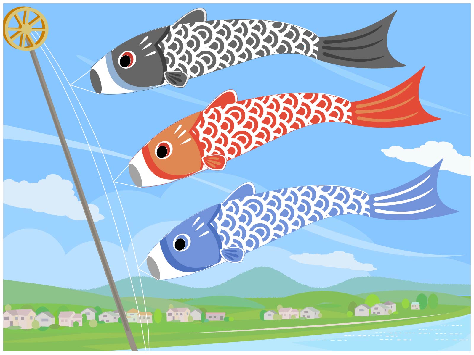 庭の木にロープを張って、「父 母 子 子 子 子」って感じにコイコイを並べて